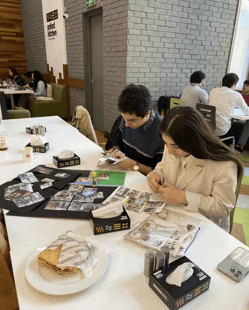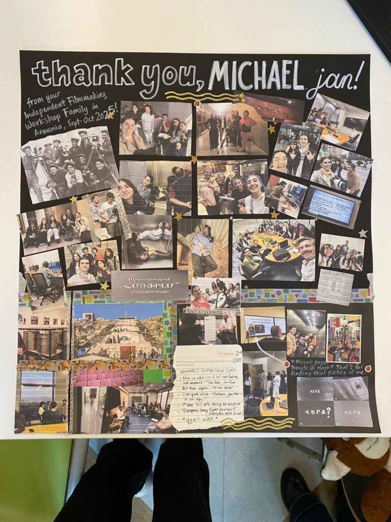 An hour before the premiere, my classmates and I had a secret project – we were making a thank-you poster for Michael, which we planned to give him after the event. We gathered in the cafeteria to glue the collage; even our workshop-mate’s children helped out 🥹
