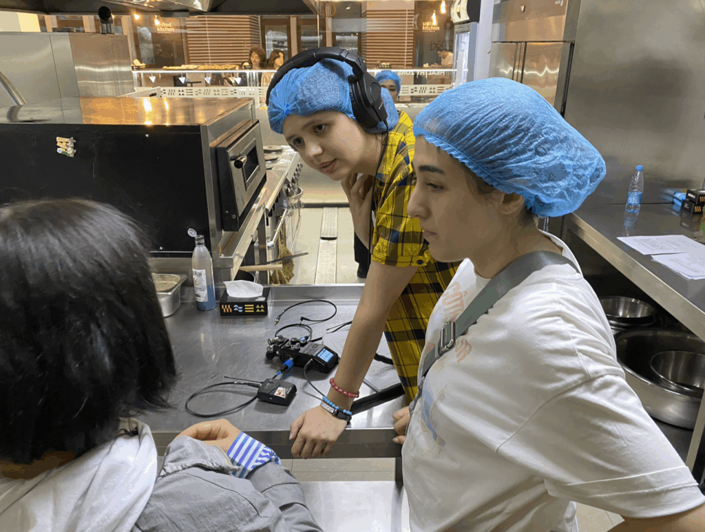 They were all bachelor’s students and I was a master’s student – but we were all on the same boat of never having shot a short film of this scale before: AUA MediaLab’s equipment and editing suite at our fingertips, the tutelage of a Hollywood veteran, and a university to romp in. (While we’d shot films here before, we never got access to the cafeteria kitchen – in my six years associated with AUA, I’d never been inside it 😆) Other groups had people with more experience – for example, my friend was a TV cameraman and another used to teach Acting Techniques at AUA, and I felt nervous about whether we’d make it through 🤣