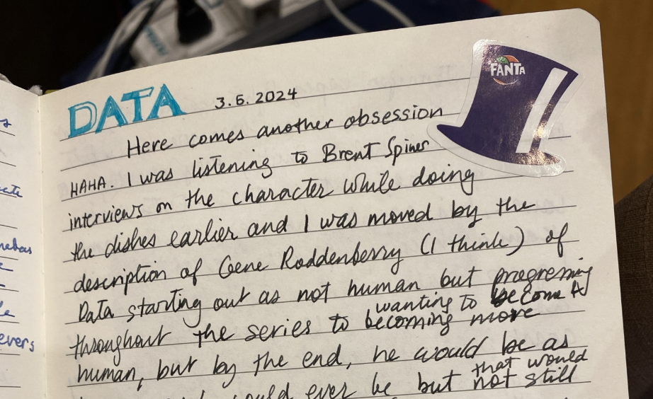 But I had fun back then, thinking of how I can copy and mimic him. It made it easier for me to row away from my mistakes and crippling self-criticism because I knew Data was able to do it. I mean, he’s incapable of feeling “crippling self-criticism” (the “In Theory” episode proves that 😅).