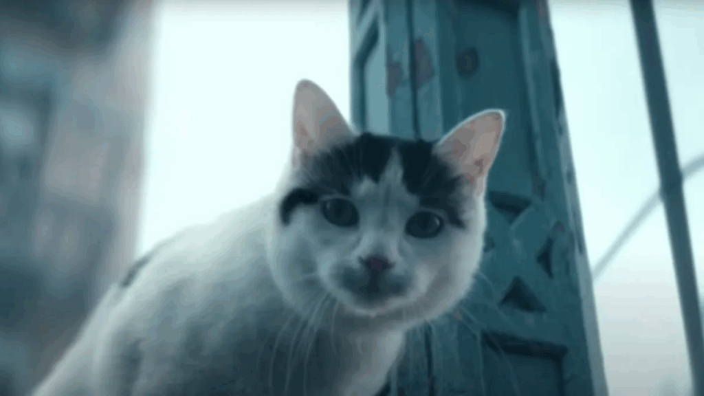 That brings me further into the theme of giving aid. After Reuben is tragically killed, Sam is left with only her cat as her helper and comfort. She continues on into the city and passes through the aforementioned crowd going to the boats, which is soon massacred by aliens. She rests in a corner, looking like she’s about to give up. Then, we follow her cat wandering around, stopping to drink water from a flooded subway. I’ve been waiting for Joseph Quinn to appear for so long that I knew he was gonna come out of that ๐